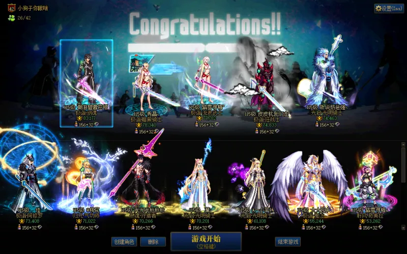 A找回包赔号-6个红10连体26个C奶多3w名望!红10红12耳环带13武器剑魂4.2w,红10女气功旅人狂战奶妈剑帝,18个3-4w角色可玩可搬砖